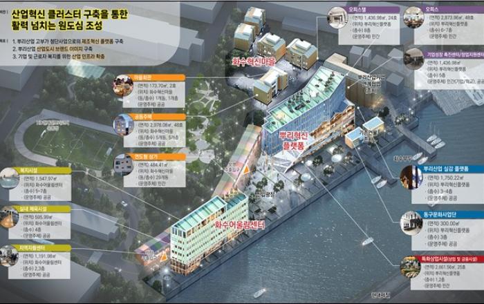 ▲ 조감도/인천시 제공 인천시는 활기를 잃어가고 있는 동구 화수부두 일원이 2024년 국토교통부 도시재생혁신지구 국가시범지구로 최종 선정됐다고 밝혔다.도시재생혁신지구는 공공이 주도하여 산업, 상업, 주거, 복지, 행정 등 기능이 집적된 지역 거점으로 복합개발해