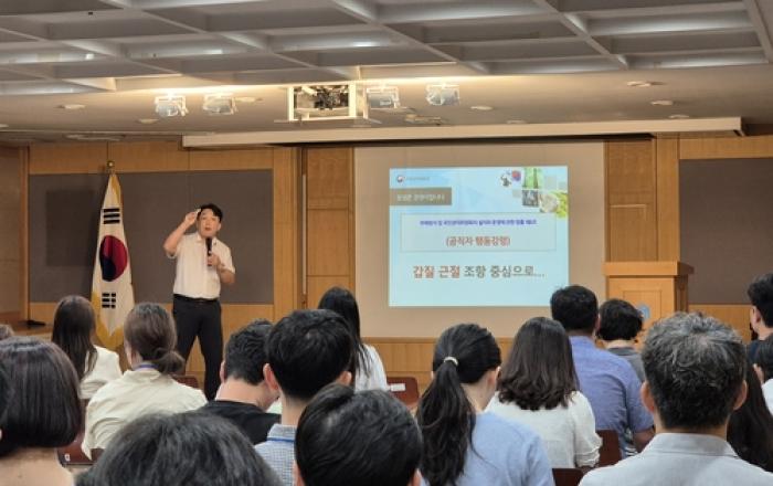 경기주택도시공사(GH)는 12일 수원 권선동 본사에서 전 직원을 대상으로 '직무상 갑질금지 등 행동강령 교육'을 실시했다고 밝혔다. 이날 교육은 직무상 갑질 행위 근절과 상호 존중하는 업무문화 구축의 일환으로 국민권익위원회 청렴교육 전문강사를 초빙해 약 2시간 동