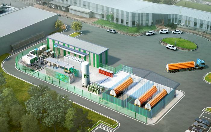 현대건설이 국내 최초 수전해 기반 수소생산기지 설계를 완료하고 본격 건설에 착수한다. 현대건설은 30일(목) 전라북도 부안의 신재생에너지단지에서 수전해 기반 수소생산기지 착공식을 갖고 건설 단계에 돌입했다. 이날 행사에는 산업통상자원부 박