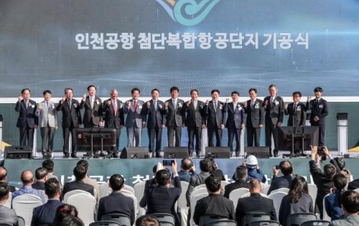 [사진제공=인천공항공사]인천국제공항공사는 18일 오후 인천공항 제4활주로 북서측 첨단복합항공단지 건설현장에서 ‘인천공항 첨단복합항공단지 기공식’을 개최했다고 밝혔다. 이날 기공식을 시작으로 2026년 2월에 첨단복합항공단지 조성이 완료되면 해외 외주 정비물량의 국내 전