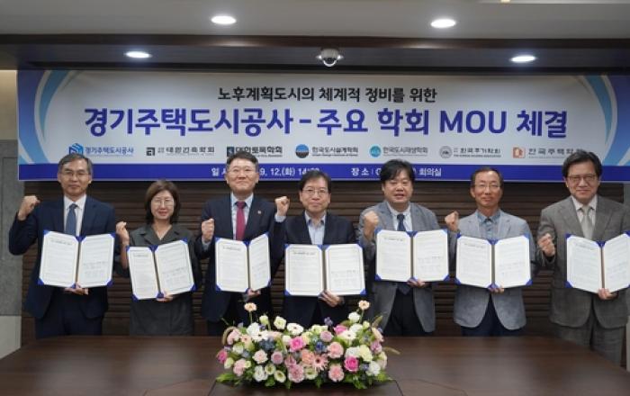 경기주택도시공사(GH)는 12일 GH 본사에서 대한건축학회, 대한토목학회 등 주요 6개 학회와 함께 경기도 내 노후계획도시의 체계적 정비를 위한 업무협약식을 가졌다고 밝혔다. 협약식에는 GH 김세용 사장과 학술단체인 대한건축학회, 대한토목학회, 한국도시설계학회, 한