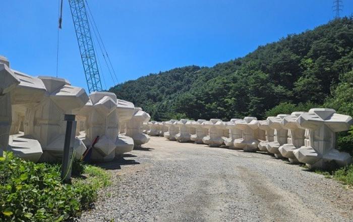 ▲ ‘파랑유도가 가능한 소파블록(K-CONE)’ 현장 거푸집 제작양지(대표 정혜정)는 자사의 ‘파랑유도가 가능한 소파블록(K-CONE)’이 한국농어촌공사에서 시행하는 특허 공법 및 신기술 인증 ‘KRC 신기술’의 기타항만 및 해안시설 분야 인증을 획득했다고 2