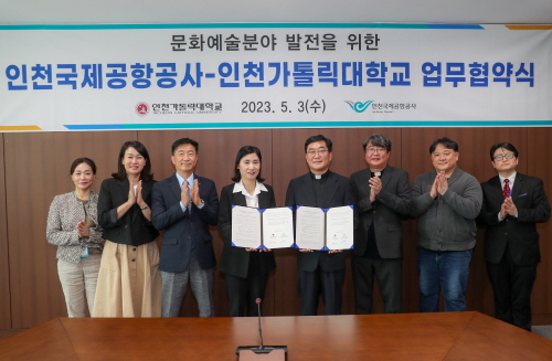 인천국제공항공사는 3일 공사 회의실에서 인천가톨릭대학교와 '문화예술분야 발전 및 교류 확대를 위한 업무협약'을 체결했다고 밝혔다.