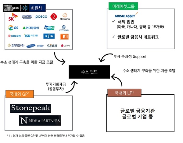 모펀드 운용사인 미래에셋이 공동 투자 파트너 스톤피크(Stonepeak), 자펀드 운용사인 노앤파트너스(Noh&Partners)와 함께 올해 말까지 투자자를 모집하고 자금을 매칭해 내년 초부터 수소 분야에 본격 투자할 계획이다.