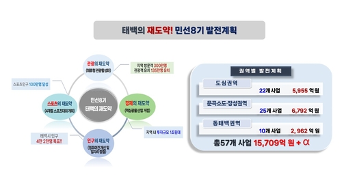 민선 8기 태백의 권역별 발전계획에서는 태백시를 3개 권역으로 나누고 총 57개 사업에 총 사업비 1조5천 709억 원을 투자한다.
