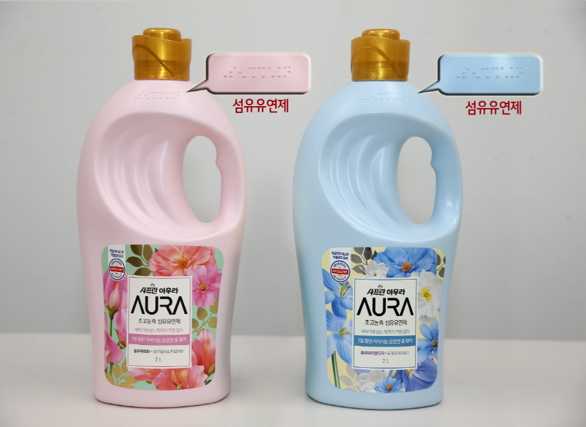 섬유유연제 용기는 세탁 세제 용기와 형태가 같거나 유사해서 사물을 촉각으로 식별하는 시각장애인이 착각하고 사용할 우려가 크다. 그래서 LG생활건강은 섬유유연제 제품 용기 앞면 윗부분에 점자로 ‘섬유유연제’라는 표시를 넣고, 시각장애인이 섬유유연제와 일반 세제를 오용할 가능성을 줄였다.