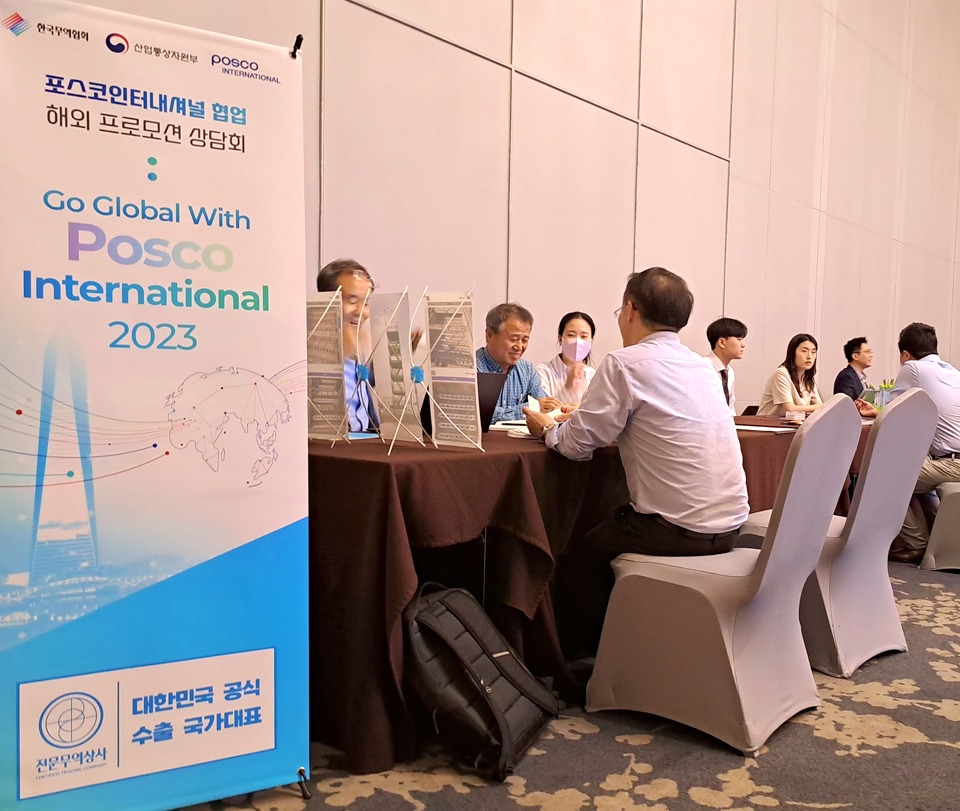 한편 포스코인터내셔널은 이번 수출상담회에 앞서 지난달 13일에는 중진공이 서울 코엑스에서 주관한 ‘2023 수출바우처 매칭페어’에 참여해 삼양정밀화학, 그레넥스, 나온웍스, 더파이러츠 등 10여개사를 상대로 1:1 맞춤형 상담을 제공했다. 매칭페어는 수출바우처 참여기업에게 국제물류운수 등 13개 분야의 서비스를 홍보하고 자유롭게 상담할 수 있는 기회를 제공하는 행사다.