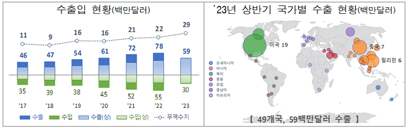 미국 수출(1900만 달러)은 올해 상반기에 이미 2021년(1800만 달러) 기준을 넘어 역대 최대를 기록한 지난해 수출액 2200만 달러에 근접했다.