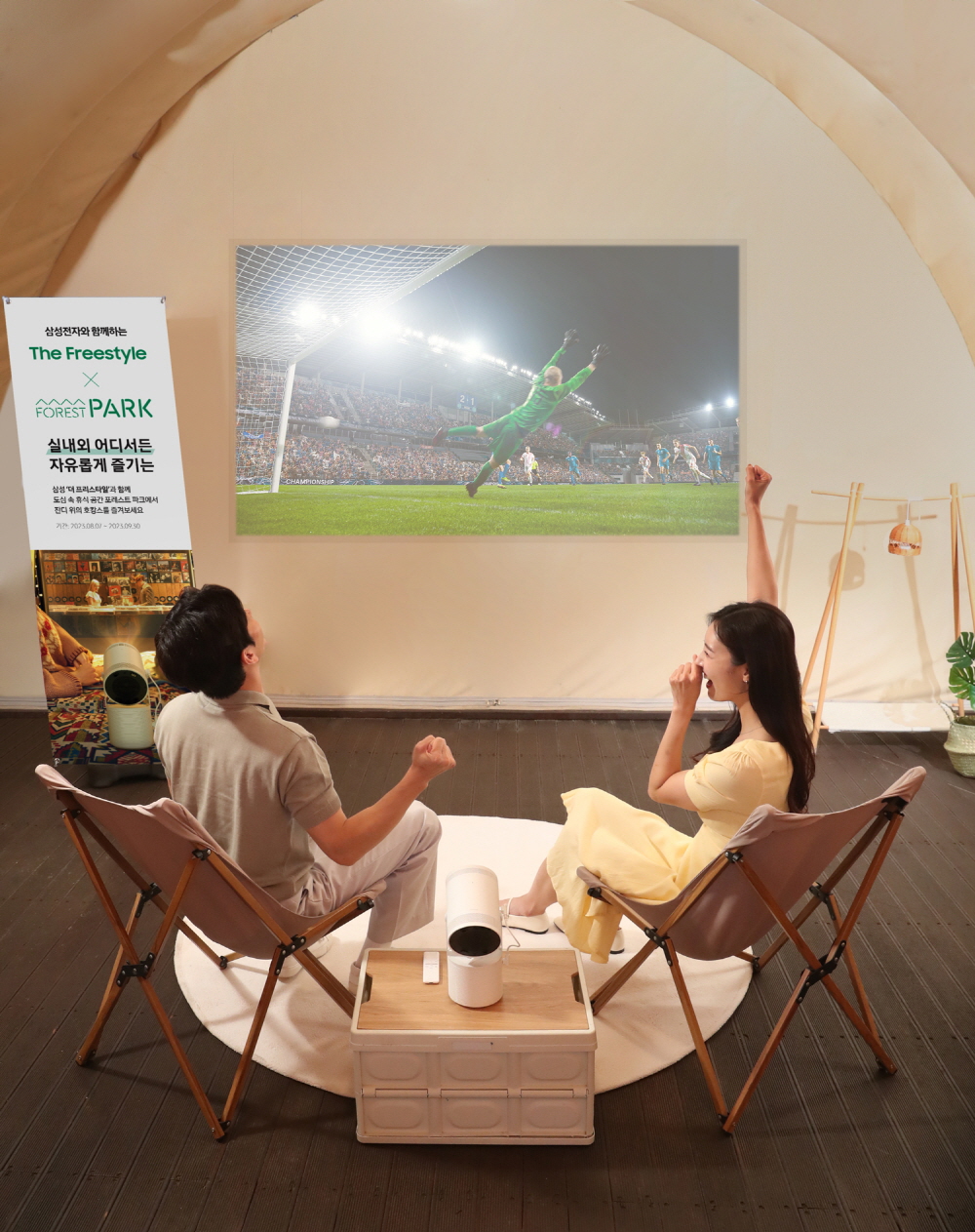삼성전자가 워커힐 호텔앤리조트와 손잡고 포터블 스크린 더 프리스타일 (The Freestyle) 체험 서비스 ‘ 더 프리스타일 X 포레스트 파크 (The Freestyle X Forest Park)’ 를 오픈했다 .