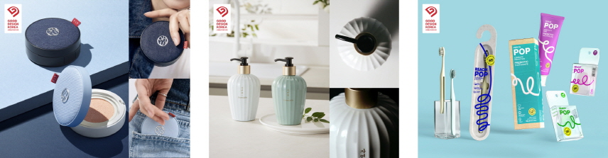 이 밖에 LG생활건강의 럭셔리 화장품 브랜드 ‘오휘’에서 데님 패션 소재를 쿠션 팩트에 적용한 ‘얼티밋 핏 톤업 진 쿠션’, 주방세제 브랜드 ‘자연퐁’과 명품 도자 브랜드 ‘광주요’가 협업한 패키지 ‘자연퐁 x KwangJuYo’, 오랄케어 브랜드 ‘페리오’와 ‘리치’에서 만든 칫솔·치실·치약 패키지 ‘POP’ 등은 한국디자인진흥원이 주최하는 굿 디자인 어워드를 수상했다. 이들 수상작은 11월 초 진행되는 국내 최대 규모 디자인 박람회의 ‘디자인 코리아 2023’ 행사에 전시된다.