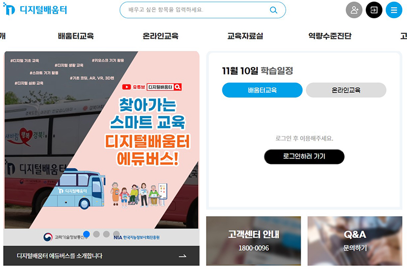 또한 교육받기를 원하는 디지털배움터를 선택해 교육신청도 가능한데, 문의사항 등은 누리집 게시판이나 대표번호(☎1800-0096)로 전화 상담을 하면 된다.
