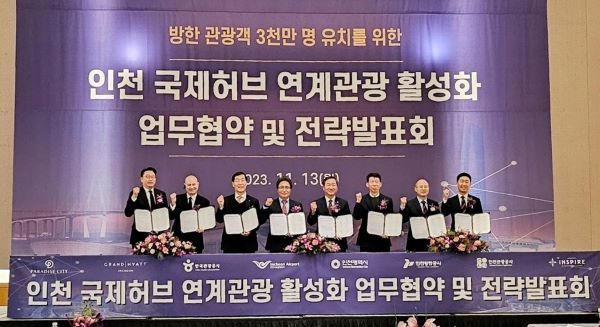 인천항만공사 이경규 사장은 13일 그랜드하얏트 인천 호텔에서 인천광역시, 인천국제공항공사, 한국관광공사, 인천관광공사, 인스파이어인테그레이티드리조트, ㈜파라다이스세가사미, ㈜KAL호텔네트워크와 “인천 국제허브 연계관광 활성화 업무협약”을 체결했다고 밝혔다.