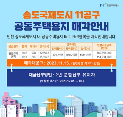 iH는 송도국제도시 11공구 내 공동주택용지를 매각한다고 지난 16일 밝혔다.