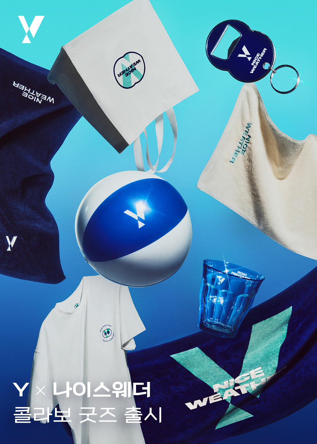 Y와 나이스웨더의 협업은 에메랄드 빛 바다를 연상시키는 Y의 브랜드 컬러와 청명한 하늘을 연상시키는 나이스웨더의 브랜드 컬러에서 영감을 받았다. ‘Keep the Youth Forever’ 라는 슬로건으로 협업이 진행된다.