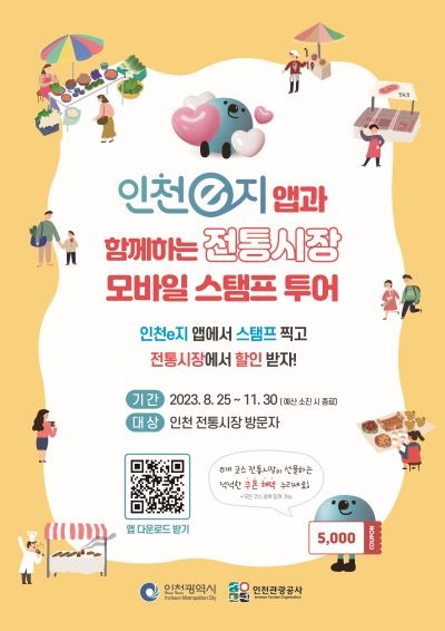 전통시장 스탬프투어는 인천e지 앱을 설치하고 주요 관광지와 전통시장으로 구성된 투어코스를 방문하면 GPS 인증을 통해 모바일 쿠폰을 획득하는 방식으로, 쿠폰은 부평종합시장, 구월⋅모래내시장, 신포국제시장, 용현시장 등 11개 전통시장 내 가맹점 138곳에서 현금과 같이 사용할 수 있어 많은 시민과 관광객의 발길을 끌었다.