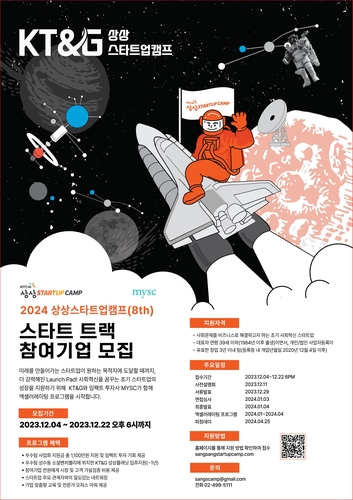 KT&G가 청년창업 지원 프로그램인 'KT&G 상상스타트업캠프' 8기 참가자를 오는 12월 4일부터 22일까지 모집한다.