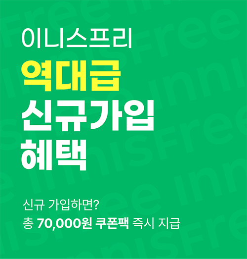 12월 1일부터 이니스프리 멤버십 신규 가입 혜택.. 가입 즉시 총 7만원 상당 쿠폰 지급 / 기본 할인에 중복 적용 가능한 ‘추가 할인 쿠폰’으로 혜택 업그레이드