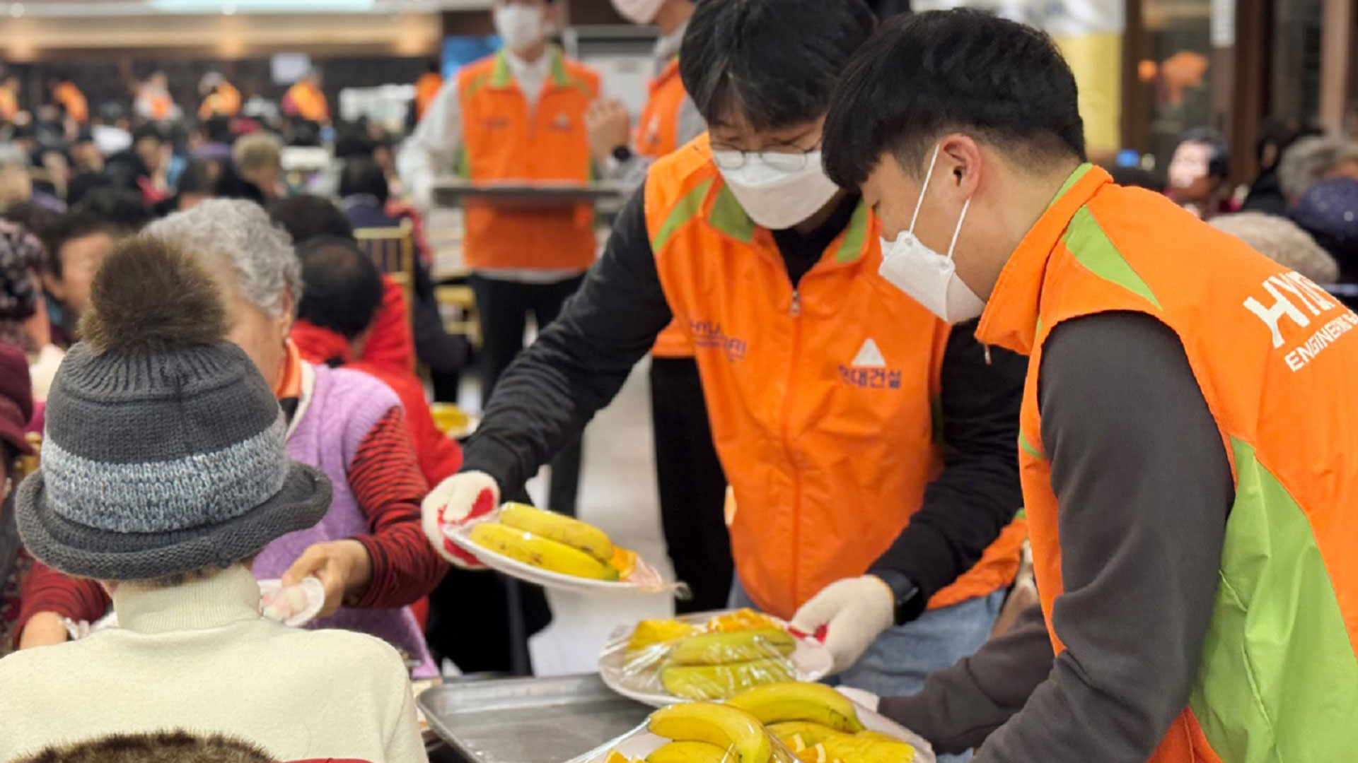 현대건설은 지난 1일(목), 서울 종로구 연지동에 있는 기독교연합회관에서 설날 맞이 경로 행사를 개최했다. 현대건설이 종로구청과 종로종합사회복지관과 함께하는 이번 행사에는 종로구 거주 어르신 500명이 참석했으며, 현대건설 임직원 30여 명이 자원봉사자로 참여해 경로잔치 행사 준비부터 배식 봉사와 선물 전달을 도왔다.