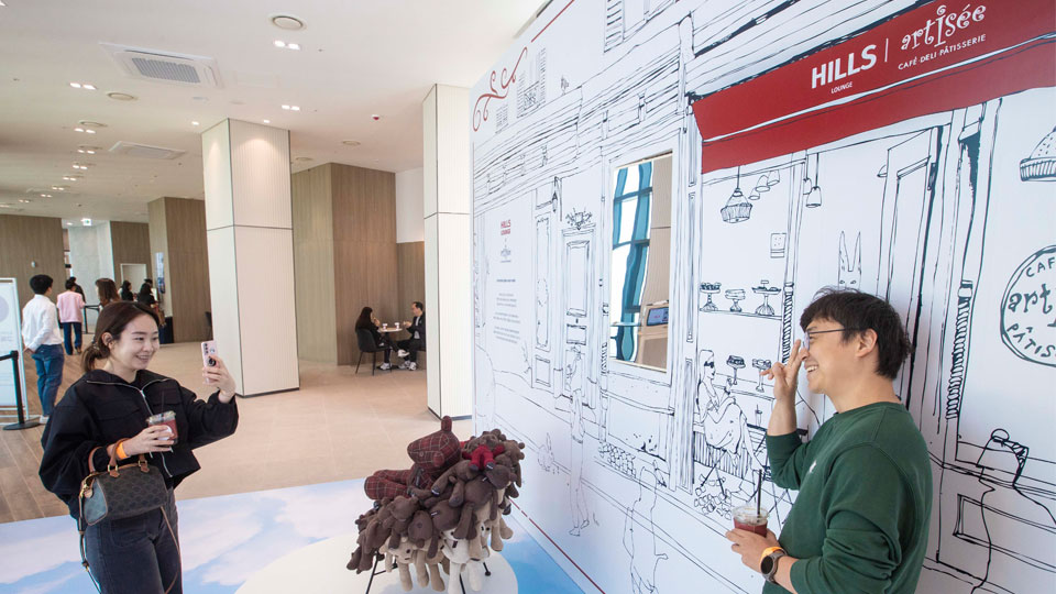 특히, 아티제의 시그니처 일러스트로 힐스테이트 생활을 표현한 거대한 동화책 포토월과 힐스테이트 벌룬 및 아티제 곰 인형 의자와 같은 다양한 아트 오브제는 입주 고객들의 큰 호응을 얻었다.