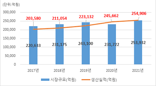 특히 최근 5년간 연평균 성장률은 5.8%로 같은 기간 국내 제조업 총생산 연평균 성장률(1.6%)보다 3배 이상 높았다.