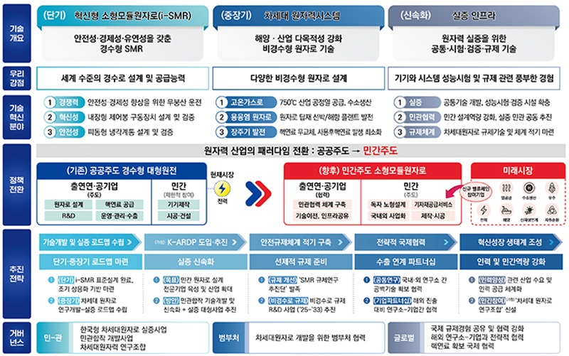 이에 과기정통부는 신속 시장 대응이 가능한 민간과 함께 기술개발을 넘어 실증까지 차세대 원자력 조기 실현을 위한 방안을 제시해 ‘청정 에너지 확보, 에너지 안보 강화, 미래 신산업 창출’을 달성할 계획이다.