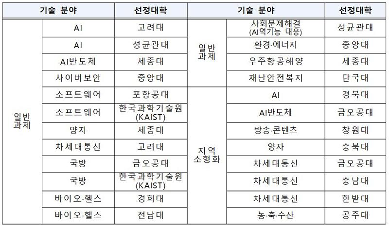 이를 통해 AI, AI반도체, 차세대통신, 양자, 방송·콘텐츠, 농·축·수산 융합 분야 등 8개 신규 과제를 선정해 지역인재 양성과 균형 발전을 적극 지원한다.
