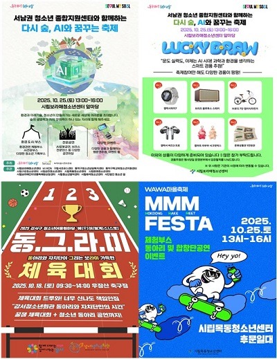 이외에도 서남권의 여러 청소년기관이 10월 중 개별 축제를 운영한다. 예를 들어 강서청소년회관이 주관하는 ‘2025 강서구 청소년어울림마당 10월 청춘 is_. 동.그.라.미’는 10월 18일(토) 우장산 축구장에서 열린다. 200여 명의 청소년이 참여해 체육 활동, 동아리 공연, 장기자랑 등 다채로운 프로그램을 함께한다.