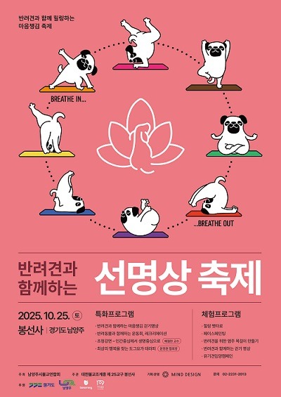 한불교조계종 제25교구본사 봉선사(교구장 호산스님)는 오는 10월 25일 오전 10시부터 오후 5시까지 남양주시 봉선사 경내에서 ‘2025 반려견과 함께하는 선명상 축제’를 개최한다.