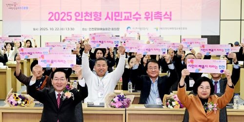 인천시는 10월 22일 인천종합문화예술회관 국제회의장에서‘인천형 시민교수 위촉식’을 성황리에 개최하며, 지역 맞춤형 평생교육 모델인 ‘인천형 시민교수’ 사업이 본격 궤도에 올랐다고 밝혔다.