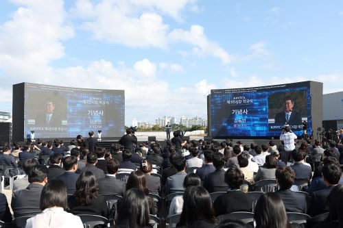 착공식에서는 ‘세계로 향하는 킨텍스’라는 주제 아래, 김동연 지사와 주요 참석자들이 LED 버튼을 함께 눌러 화면을 점등함으로써 킨텍스 마이스 산업의 새로운 도약을 상징적으로 선포했다. 하나로 합체된 LED 화면에선 완성된 제3전시장과 오색축포 이미지가 구현됐다.