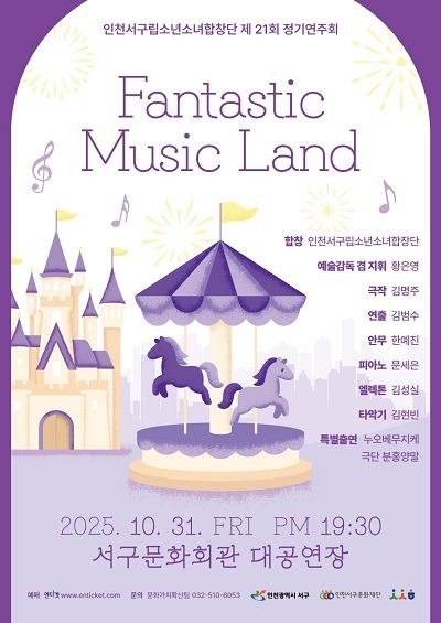 인천서구립소년소녀합창단이 오는 10월 31일(금) 오후 7시 30분, 서구문화회관 대공연장에서 제21회 정기연주회‘Fantastic Music Land’를 개최한다.