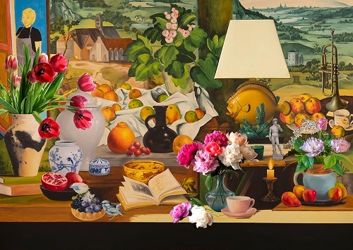 이번 시리즈의 대표작 ‘Still Unstill’은 쿤데라의 철학적 개념을 회화적으로 구현한 연작이다. 예를 들어 작품에 등장하는 ‘도자기’는 인간의 연약함, ‘꽃’은 덧없음과 순간의 아름다움, ‘과일’은 풍요와 동시에 부패를 상징한다. 이러한 상징들이 한 화면에서 공존하며 긴장과 조화를 이루는 순간, 작가는 인간 내면의 모순을 미학적 균형으로 전환시킨다.