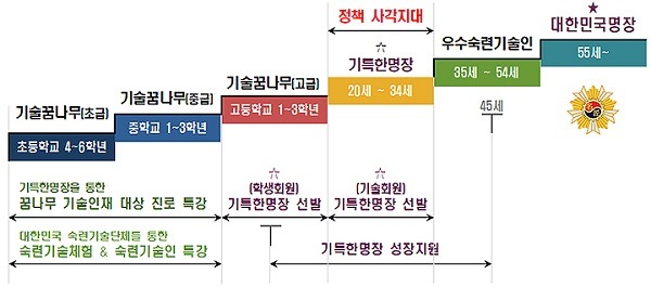 이 밖에도 대한민국명장 선정 때 가점부여, 대한민국명장과 1:1 멘토-멘티제 운영 등 다양한 우대 혜택을 준다.