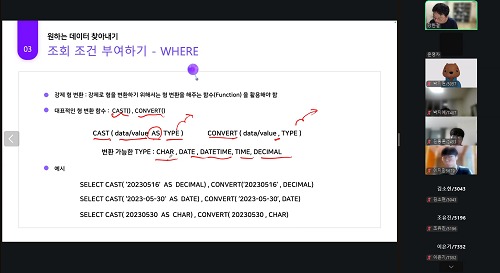 이번 프로그램은 데이터 분석의 기초부터 실무 활용까지 체계적으로 학습하도록 구성됐으며, 파이썬(Python), SQL, 머신러닝(Machine Learning) 등 산업 전반에서 활용도가 높은 핵심 기술을 중심으로 진행됐다. 학생들은 방과 후 시간을 활용해 희망 과정을 선택적으로 수강할 수 있었으며, 실무 중심의 커리큘럼을 통해 데이터 분석 실무 능력을 강화했다.
