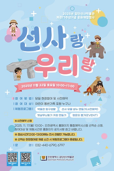 인천검단선사박물관은 오는 22일 개관 17주년을 맞아 문화체험행사 <선사랑 우리랑>을 개최한다고 밝혔다.