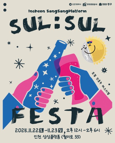 인천시와 인천관광공사는 11월 22일부터 23일까지 ‘상상플랫폼’ 에서 전통주 문화의 새로운 가능성과 인천 로컬 양조장 활성화를 위한 복합 문화축제 「2025 상상플랫폼 술술페스타」를 개최한다고 밝혔다.