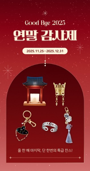 이번 ‘2025 연말 감사제’는 한국민속촌 스토어 공식 온라인몰에서 12월 31일까지 진행되며, 자세한 내용은 이벤트 페이지를 통해 확인할 수 있다.