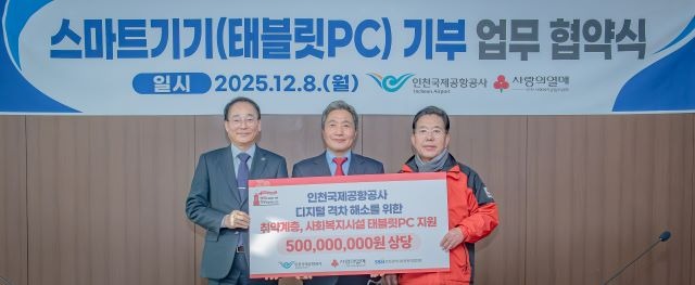 인천공항공사 이학재 사장은 “디지털 격차 해소와 포용적 복지 실현을 위해 이번 기부를 마련했다”며, “앞으로도 지속적인 사회공헌 활동을 통해 공공기관으로서 사회적 가치 실천에 앞장서겠다”고 말했다.