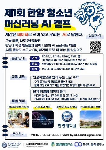 이번 캠프는 한양대학교 수리데이터사이언스학과와 협력해 진행되며, 청소년들이 수학적 창의력과 데이터 분석 역량, AI 기술 활용 능력을 발휘해 실제 사회문제를 분석하고 해결 방안을 도출하는 ‘실전형 융합 캠프’로 기획됐다.