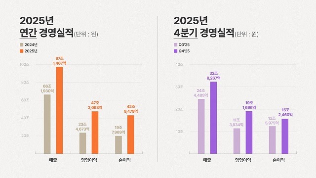 – 2025년 연간 매출 97조 1,467억 원, 영업이익 47조 2,063억 원, 순이익 42조 9,479억 원