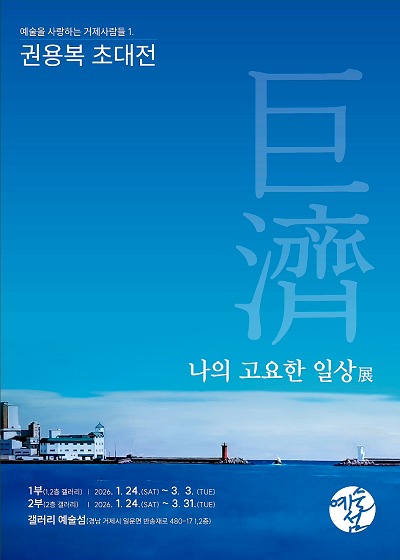 아름다운 남해안, 천혜의 절경이 즐비한 경상남도 거제시에서 ‘예술여행, 문화관광 명소 만들기’ 문화마케팅을 지향하는 갤러리예술섬(Gallery Art Island)이 거제 작가를 조명하는 기획전 시리즈 중 첫 번째인 ‘예술을 사랑하는 거제사람들1 - 권용복 초대전: 거제, 나의 고요한 일상’을 개최한다.