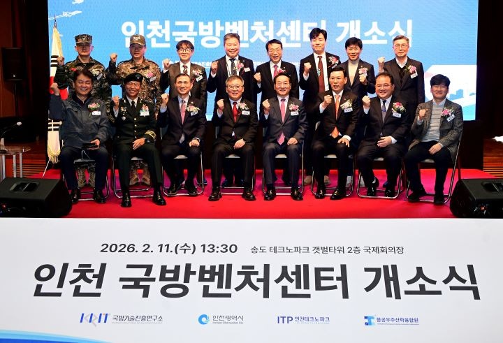 인천시가 11일 송도동 갯벌타워에서 인천국방벤처센터 개소식을 열고, ‘국방·항공·첨단산업을 선도하는 글로벌 혁신도시 인천’이라는 비전을 선포하며 방위산업 육성에 본격적으로 나섰다.