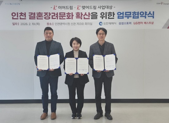 인천시는 2월 19일 시청 신관 회의실에서 인천지역 삼성스토어 및 LG전자 베스트샵과 결혼장려 문화 확산을 위한 민간협력 협약을 체결했다고 밝혔다.