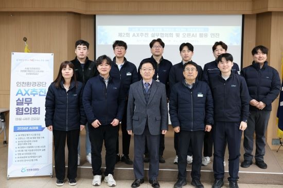 인천환경공단은 26일 본부 회의실에서 인공지능 대전환(AX) 공감대 형성 및 추진 역량 집중을 위한 ‘제2차 AX추진 실무협의회 및 오픈 AI 활용 연찬’을 개최했다고 밝혔다.
