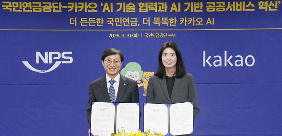 카카오(대표이사 정신아)는 31일 전북 전주시에 위치한 국민연금공단 본부에서 국민연금공단(이사장 김성주, 이하 공단)와 ‘AI 기반 공공서비스 혁신 및 업무전환에 관한 양해각서(MOU)’를 체결했다고 밝혔다.