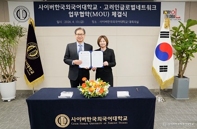 사이버한국외국어대학교(총장 문휘창)는 4월 10일(금) 사단법인 고려인글로벌네트워크(이사장 채예진)와 고려인 대상 교육 지원 강화를 위한 업무협약(MOU)을 체결했다.