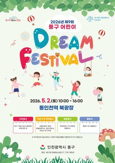 동구청은 5월 2일 동인천역 북광장에서 제104회 어린이날을 맞아‘2026년 제9회 동구 어린이 Dream Festival’을 개최한다고 밝혔다.