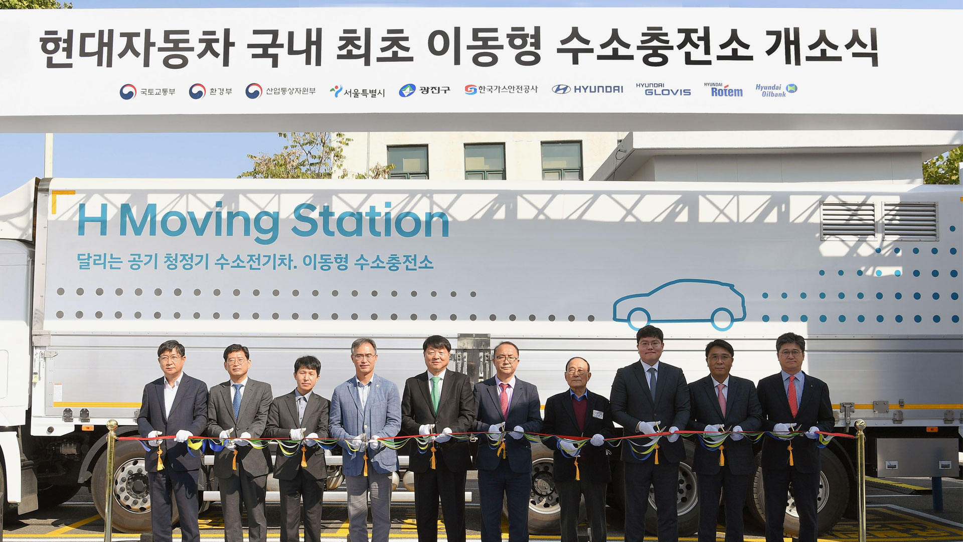 현대자동차는 27일(목) 서울시 광진구 중곡동에 위치한 이동형 수소충전소 운영지에서 『이동형 수소충전소 H 광진 무빙 스테이션 (Moving Station)』 개소식을 개최했다.