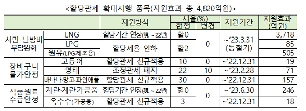 환율상승 영향으로 서민층이 주로 소비하는 바나나 등 열대과일도 할당관세를 올해 말까지 신규 적용한다.