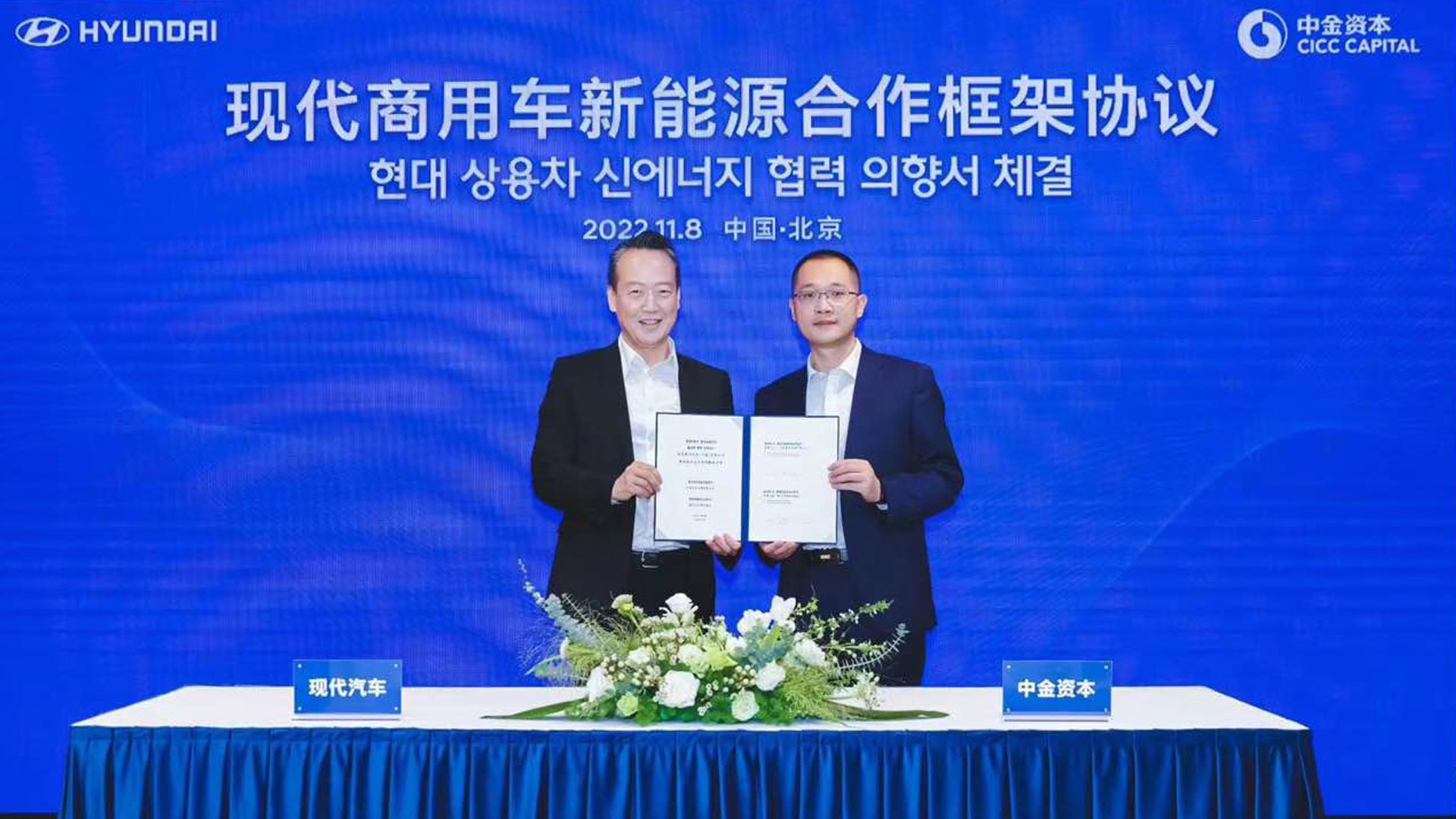 이번 협약은 중국 및 글로벌 사업장을 보유한 중국 내 최우수 국제금융투자 기업 CICC와 자회사 CCM의 광범위한 투자 네트워크를 활용해 현대자동차 상용사업의 전동화 전환 가속화와 친환경 상품 판매 활성화, 자율주행 등 미래사업 기반 확보를 목적으로 체결됐다.